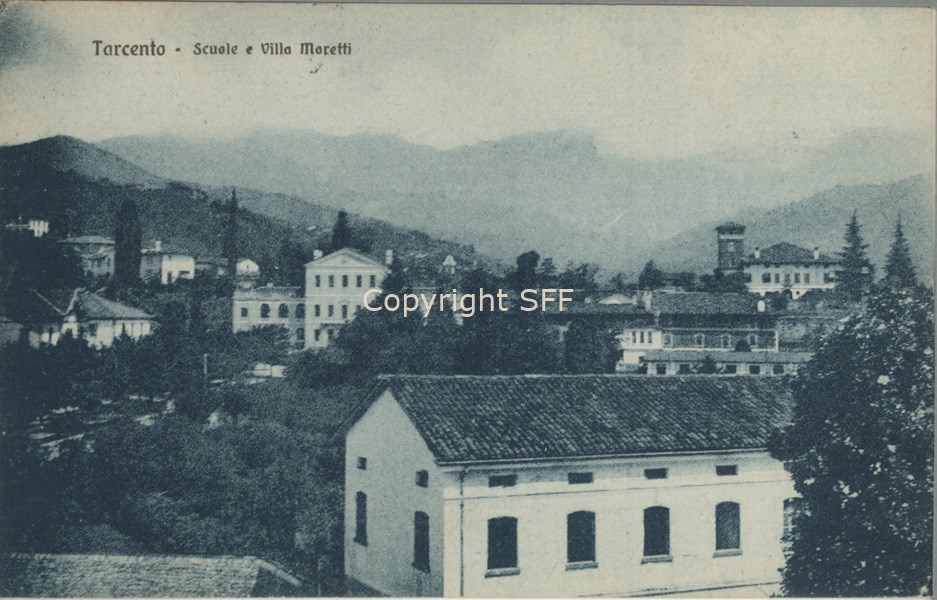 L' edificio delle scuole e sullo sfondo villa Menazzi Moretti