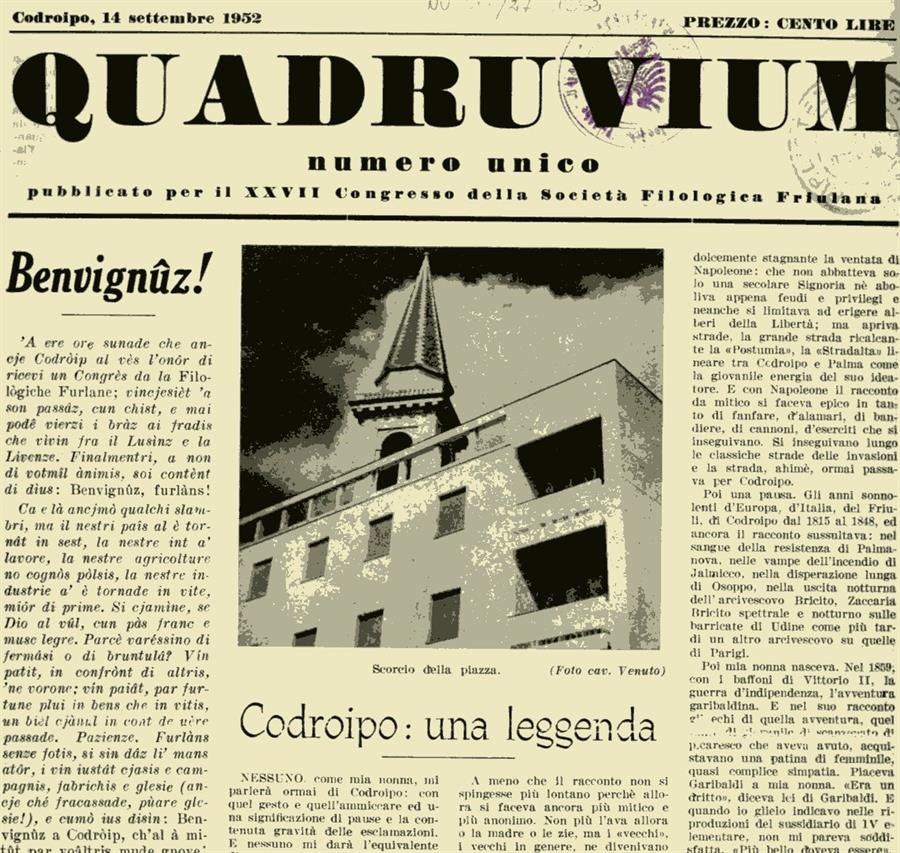 Quadruvium : numero unico pubblicato per il 27. Congresso della Società filologica friulana : Codroipo, 14 settembre 1952