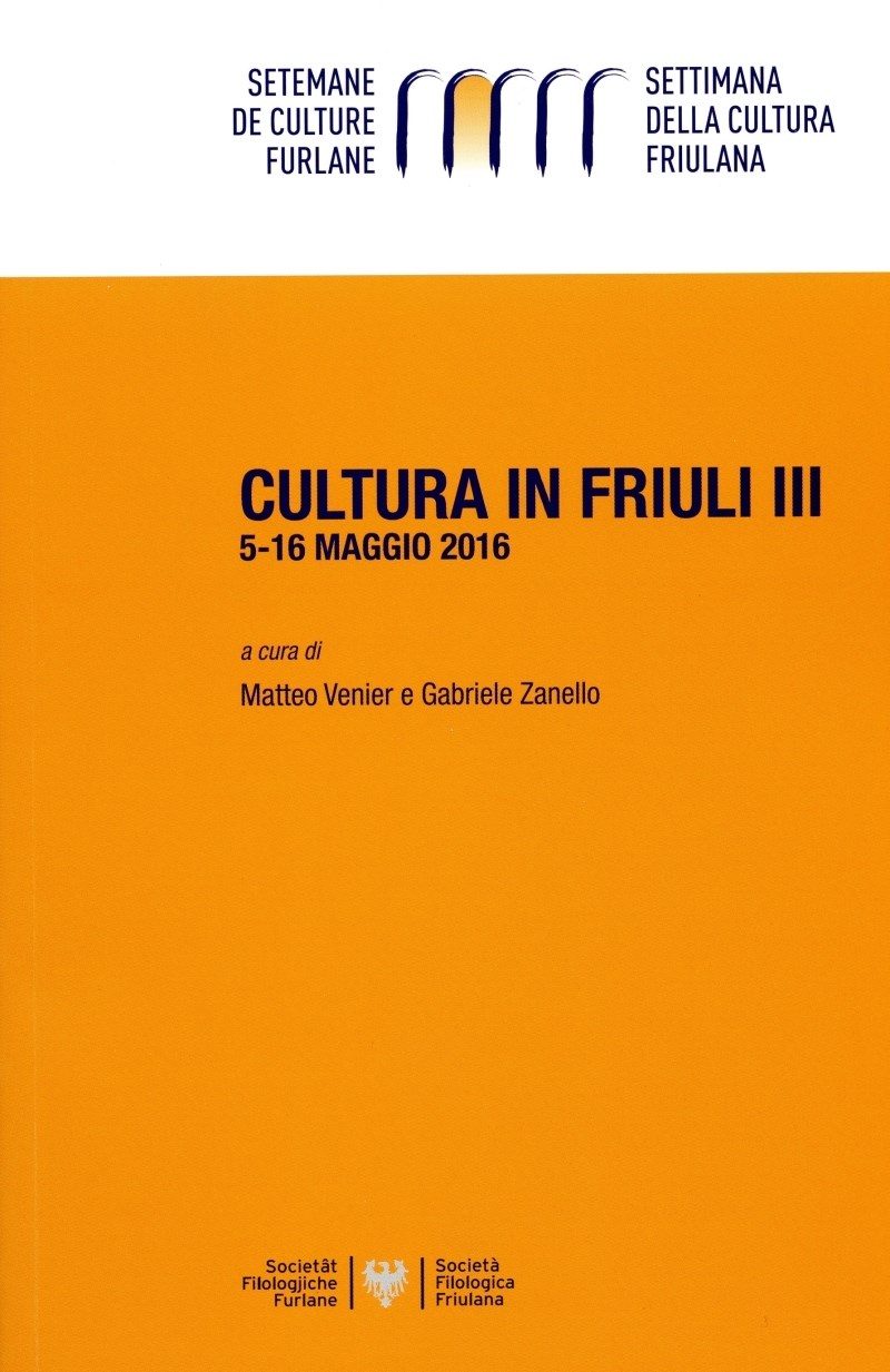 : settimana della cultura friulana = setemane de culture furlane : 5-16 maggio 2016 / a cura di Matteo Venier e Gabriele Zanello. - Udine : Società Filologica Friulana, 2017. - 770 p. : ill. ; 24 cm