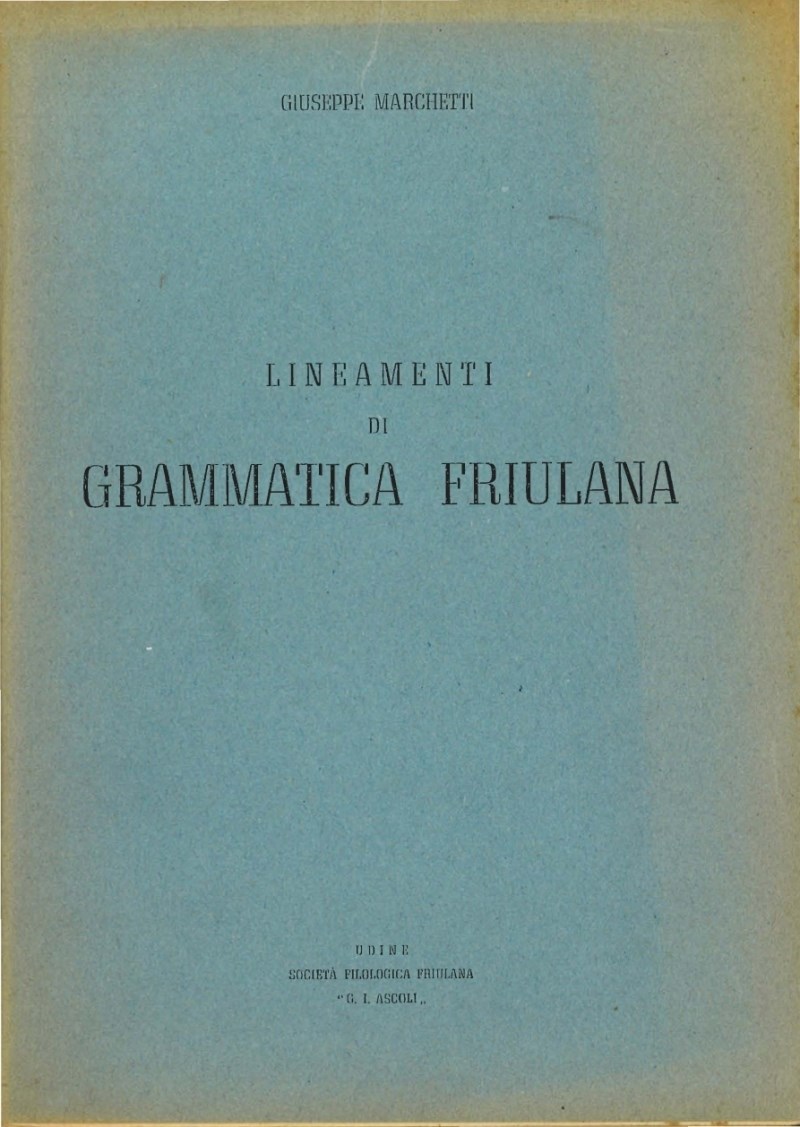 / Giuseppe Marchetti. - Udine : Società filologica friulana "G.I.Ascoli", 1952 (stampa 1953). - 215 p. ; 22 cm