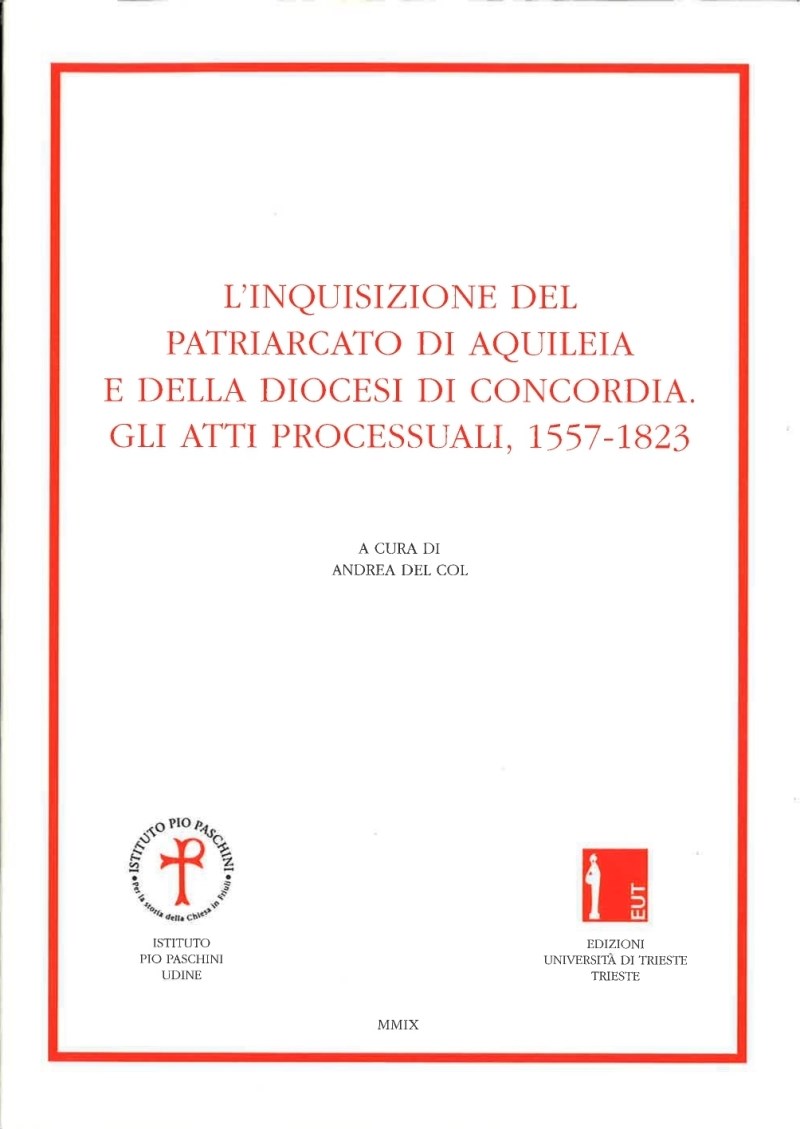 : gli atti processuali, 1557-1823 / a cura di Andrea Del Col. - Udine : Istituto Pio Paschini ; Trieste : EUT, 2009. - 476 p. ; 24 cm. - (Inquisizione e società . Quaderni ; 3) (Fonti per la storia della Chiesa in Friuli ; 11)