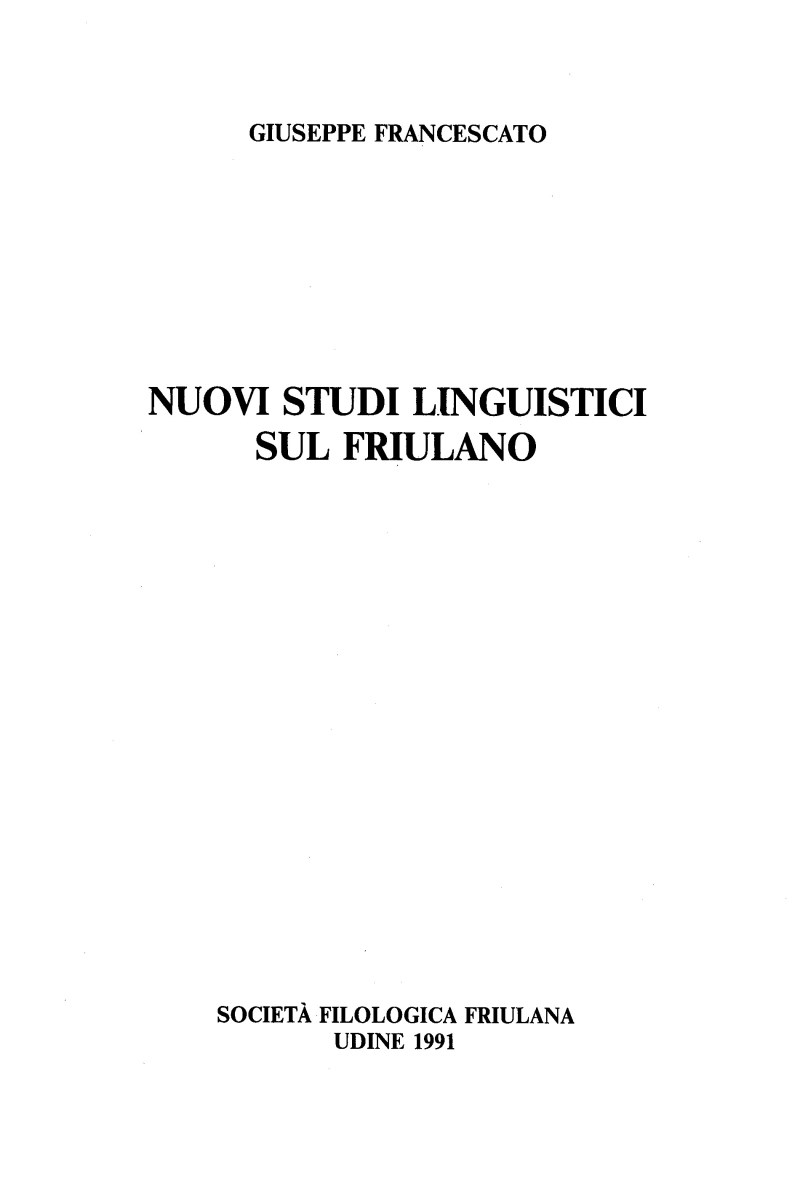/ Giuseppe Francescato. - Udine : Società filologica friulana, 1991. - 295 p. ; 24 cm
