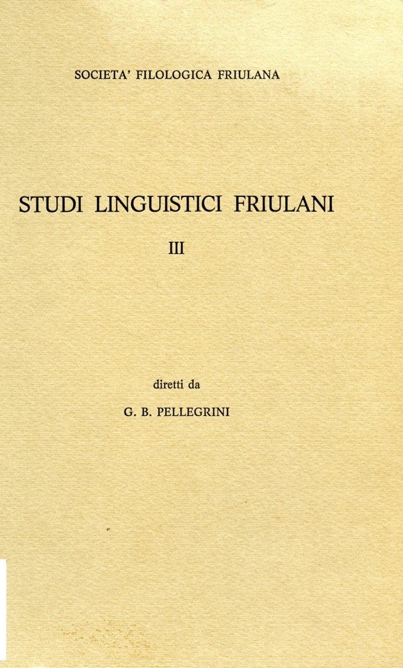 [Presentazione al terzo volume de Studi linguistici friulani diretti da G.B. Pellegrini]