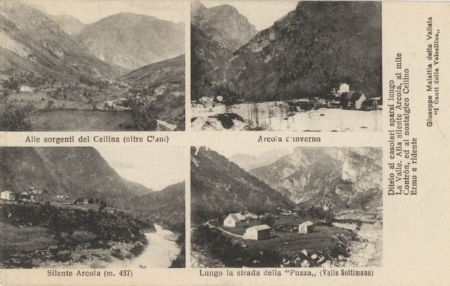 Le sorgenti del fiume Cellina; la frazione di Arcola e un aspetto della valle Settimana