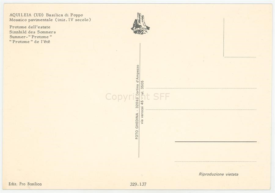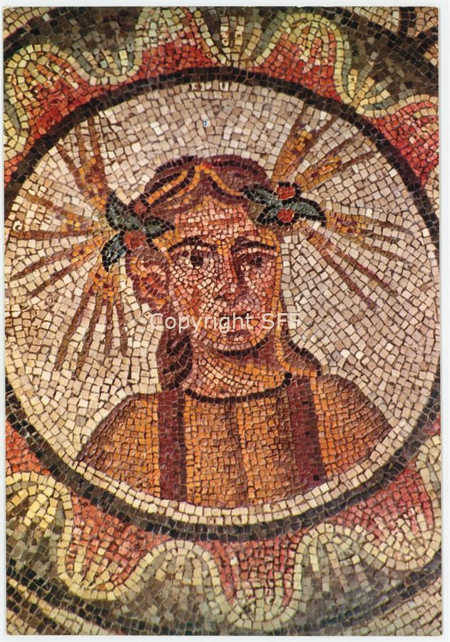 Particolare raffigurante la personificazione dell'Estate nel mosaico pavimentale già dell'aula meridionale del perduto complesso teodoriano della Basilica di Aquileia, scoperto sotto il pavimento della navata centrale e laterale destra della chiesa attuale tra la fine dell'Ottocento e l'inizio del Novecento: l'Estate fa parte della decorazione del secondo comparto nella seconda delle quattro campate in cui è suddiviso il tappeto musivo.