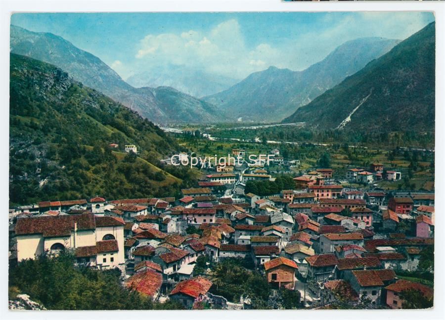 Panorama sull'abitato di Trasaghis, alle pendici delle Prealpi Carniche, affacciato sulle azzurre acque del Lago dei Tre Comuni e lambito fiume Tagliamento
