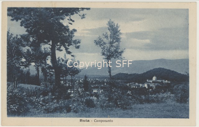 Una veduta del paese e sullo sfondo a destra il cimitero