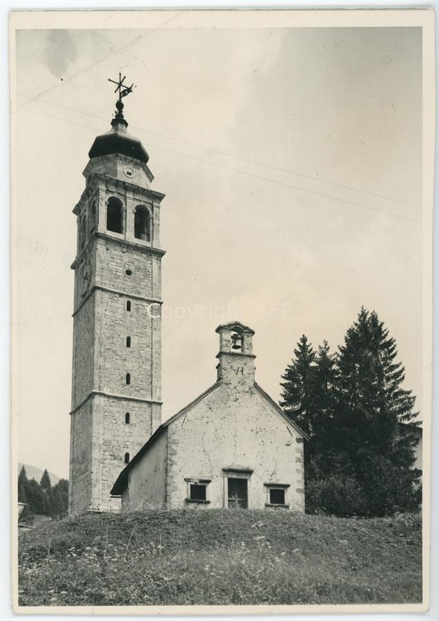 La chiesa di San Floriano, la cui costruzione risale al sec. XV, si trova a Cella, frazione di Forni di Sopra