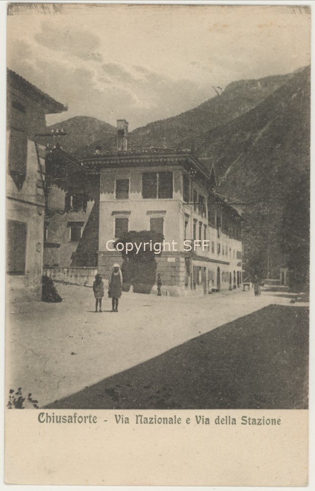 Via Nazionale all'interno del paese e l'incrocio con via della Stazione