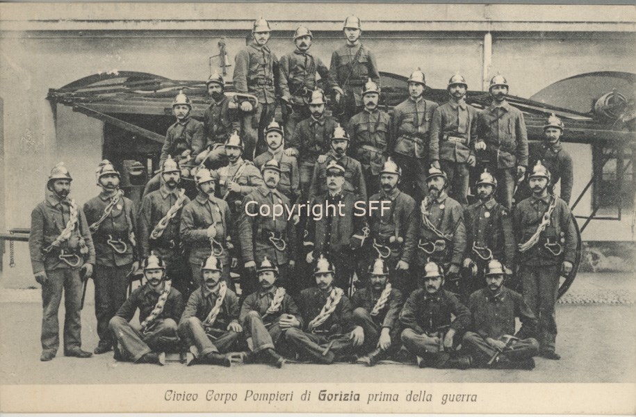 Ritratto di gruppo del corpo dei civici pompieri di Gorizia prima della prima guerra mondiale