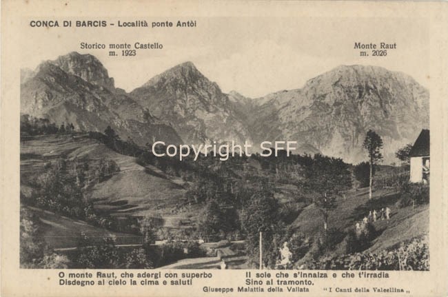 Conca di Barcis - Località ponte Antòi - Storico monte Castello m. 1923 - Monte Raut m. 2026