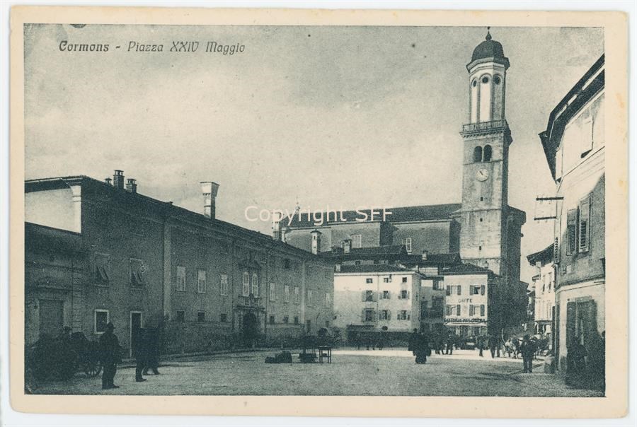 Cartolina viaggiata, animata con vista sulla piazza XXIV Maggio di Cormons