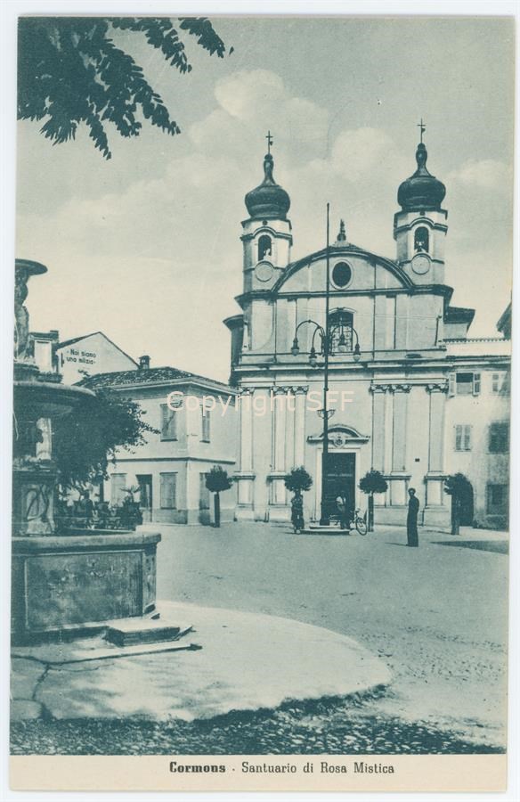 La Piazza Libertà di Cormons dove sorge la chiesa di Santa Caterina, nota anche come Santuario di Rosa Mistica. Questo nome è dovuto ad una piccola statua prodigiosa di Maria, incastonata come pietra preziosa nel grande altare policromo della chiesa. Sul lato sinistro dell'immagine compare sul muro di una casa la scritta "- Noi siamo/ una milizia". La frase fu pronunciata da Benito Mussolini nel discorso del 20 settembre ad Udine in occasione dell'adunata fascista.