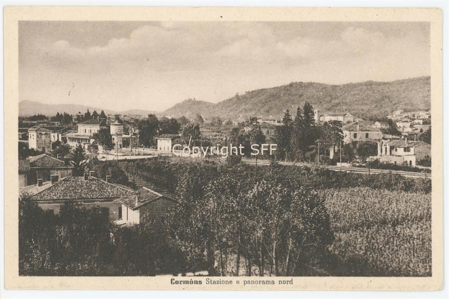 Cartolina panorama su Cormons ripreso dal lato della stazione ferroviaria