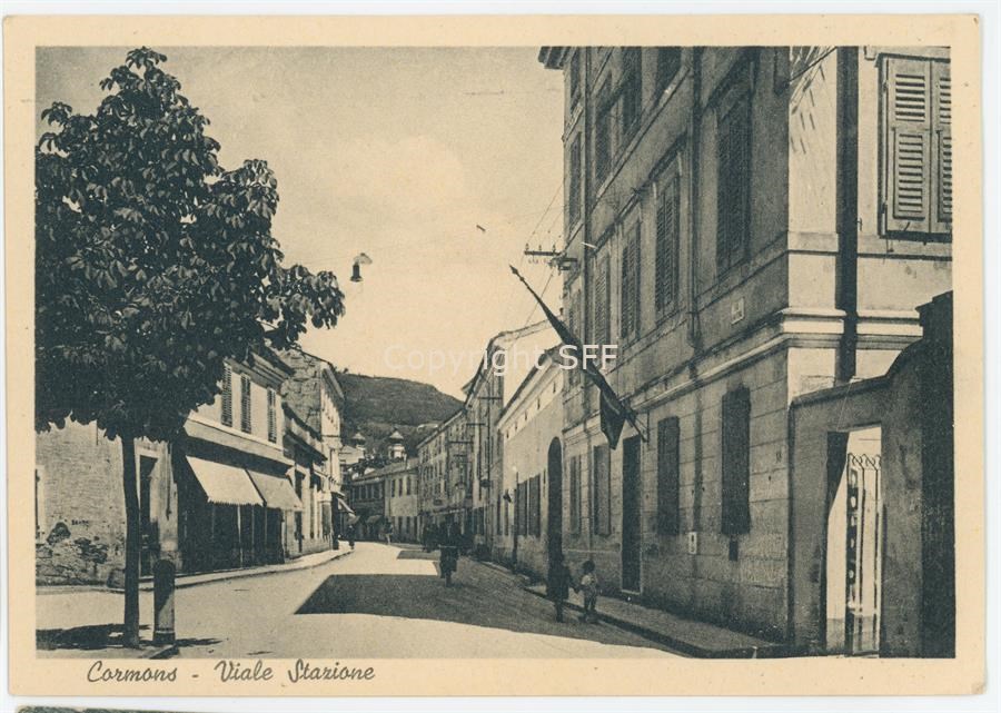 Cartolina animata con vista su viale della Stazione, oggi viale Friuli, a Cormons