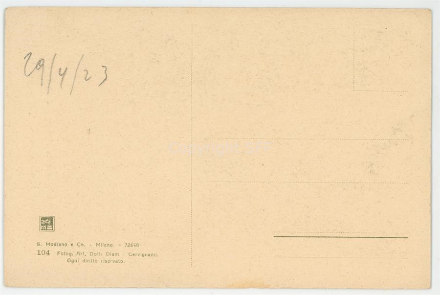 Il monumento fu scoperto nel 1902 in una necropoli a nord-est della città . La cartolina celebra l'annessione del territorio all'Italia, avvenuta dopo lo scoppio del primo conflitto mondiale, con l'ingresso dei bersaglieri il 24 maggio 1915.