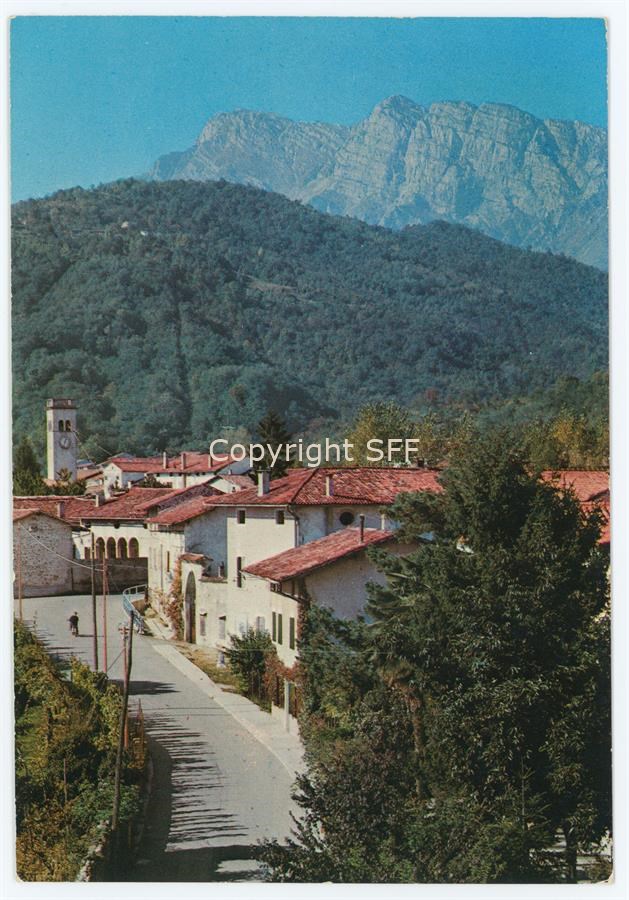 Panorama sull'abitato di Fanna, sullo sfondo il monte Raut