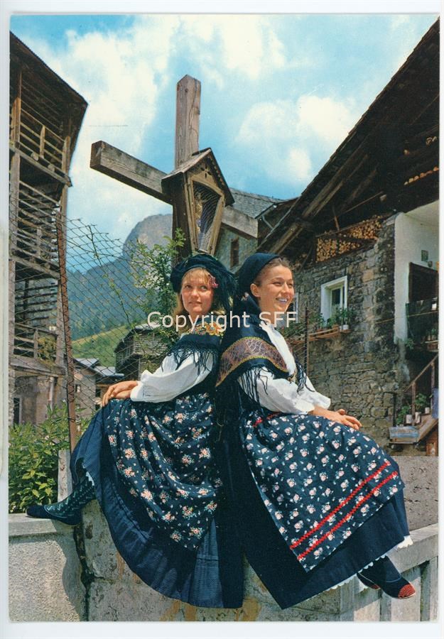 Ritratto di gruppo in esterno. Donne in abiti della tradizione friulana. Documentazione del patrimonio etnoantropologico