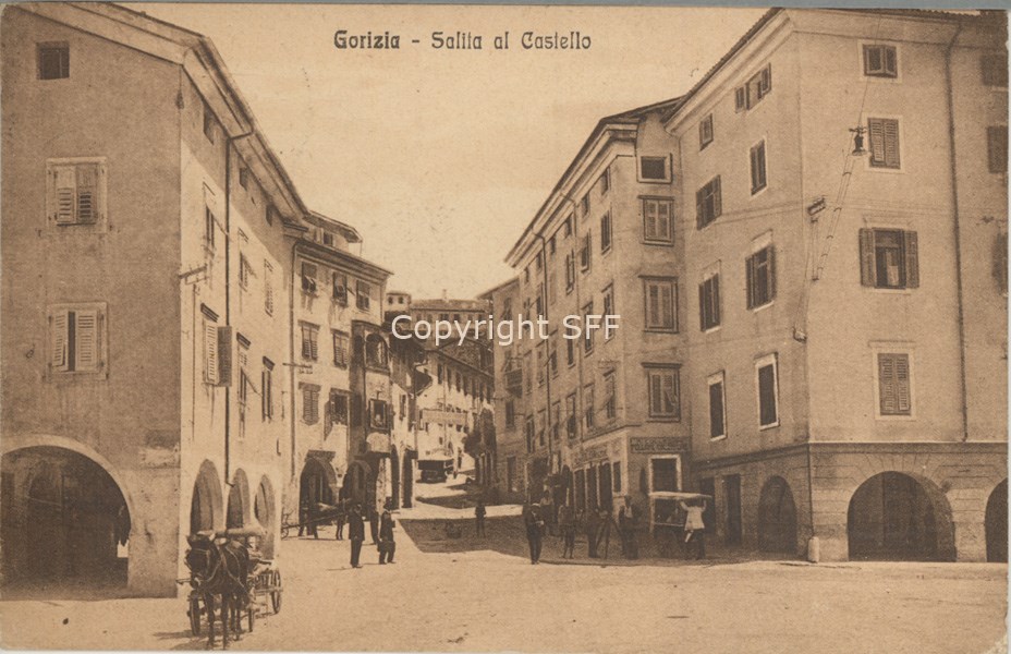 Edifici all'imbocco della salita che porta al Castello (attuale via D'Annunzio, già Riva del Castello)