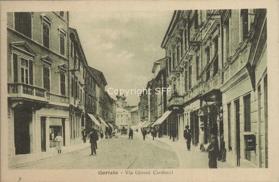 Case private e attività commerciali lungo via Carducci (già Contrada dei Signori, Herrengasse).