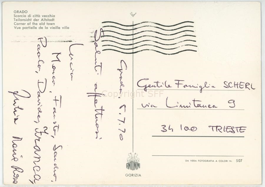 Veduta del centro storico di Grado ripresa dal poggiolo di una casa in Via Gradenigo.