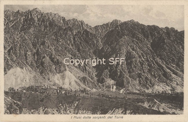 Veduta della frazione di Musi con alle spalle la catena dei monti Musi
