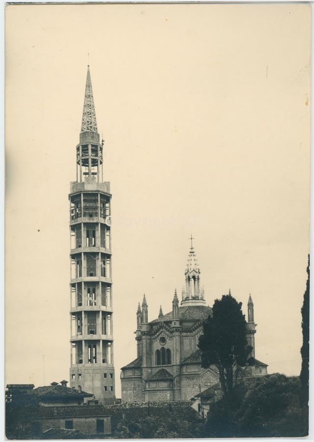 Il campanile di Mortegliano sorge a fianco del duomo arcipretale dei Santi Pietro e Paolo. Esempio di eclettismo novecentesco, ideato dall'architetto Pietro Zanini, consacrato nel 1959.