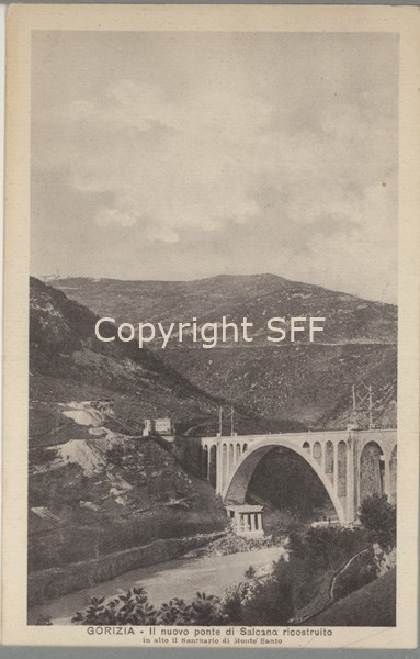 Il ponte di Salcano viene edificato nei pressi di Gorizia (allora sotto l'Impero Austroungarico) per consentire il passaggio del fiume Isonzo della Ferrovia Transalpina inaugurata nel 1906. Distrutto durante il primo conflitto mondiale dalle truppe austriache in ritirata viene ricostruito durante il periodo fascista.