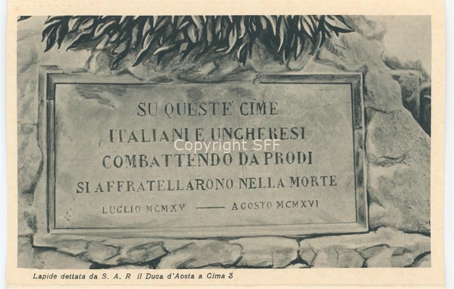 Lapide dettata da S.A.R. il Duca d'Aosta a Cima 3