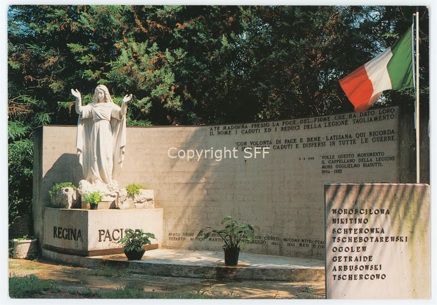 Monumento eretto nel 1965 dal gruppo reduci della Tagliamento in Russia, in memoria dei caduti e scomparsi al Fronte Orientale della Legione Tagliamento (poi Gruppo Battaglioni Tagliamento 1923 - 1945.