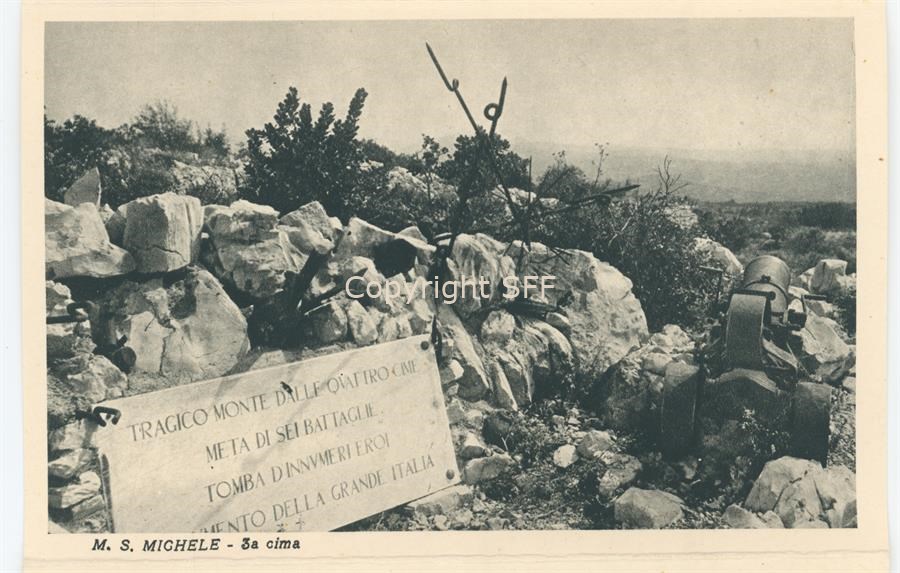 Veduta della terza Cima del Monte San Michele durante la Grande Guerra.