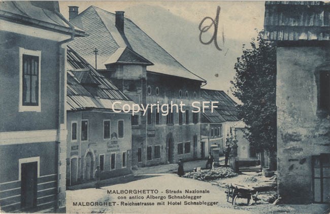 Malborghetto - Strada Nazionale con antico Albergo Schnablegger; Malborghet Reicsstrasse mit Hotel Scnablegger
