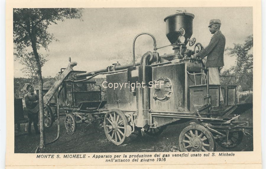 MONTE S. MICHELE - Apparato per la produzione dei gas venefici usato sul S. Michele nell'attacco del giugno 1916