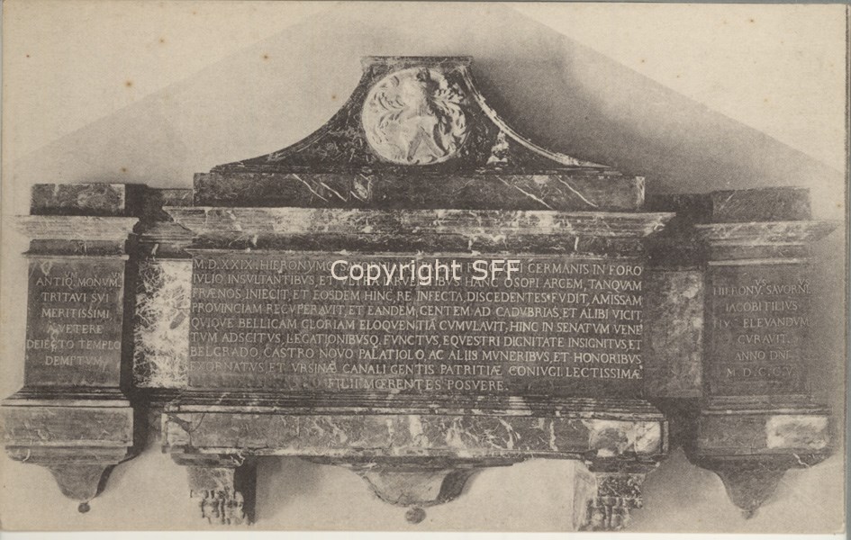 Iscrizione su parte del mausoleo dedicato a Girolamo Savorgnano