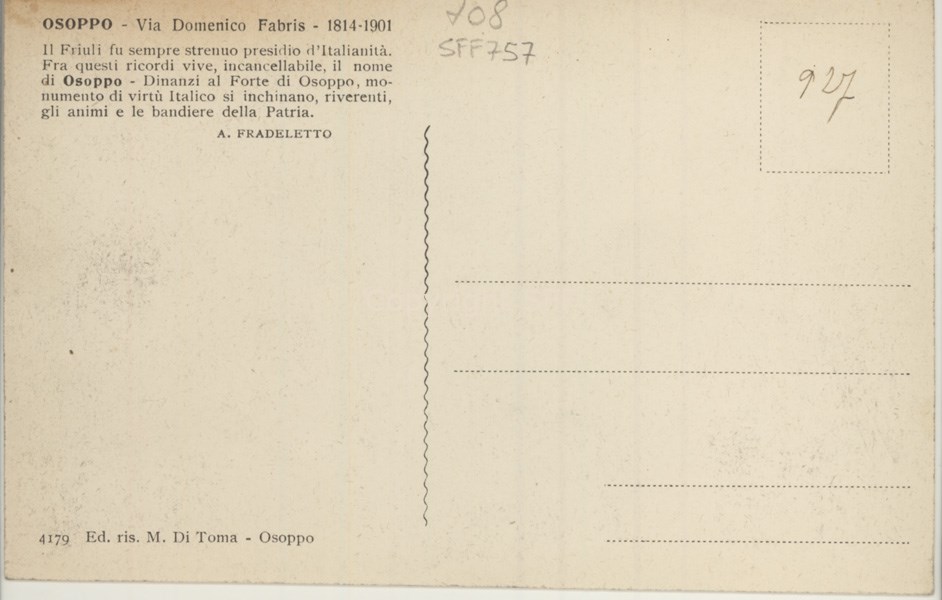 Osoppo - Via Domenico Fabris 1814-1901