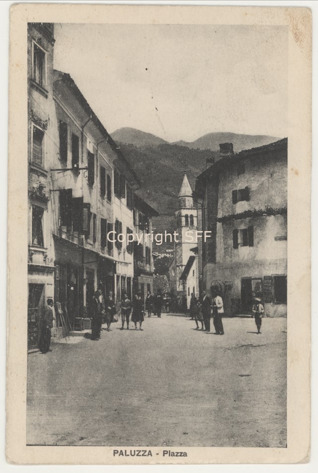 Una piazza del paese e sullo sfondo il Duomo di Santa Maria