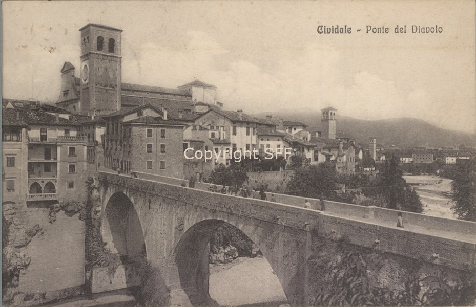 Il ponte del Diavolo, edifici cvili e il fiume Natisone
