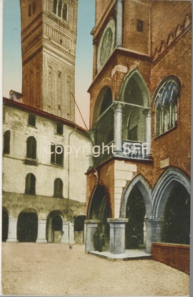L'antico palazzo comunale realizzato nel XIII secolo e più volte ampliato e rimaneggiato; in secondo piano si intravede anche il campanile facente parte della chiesa di San Marco