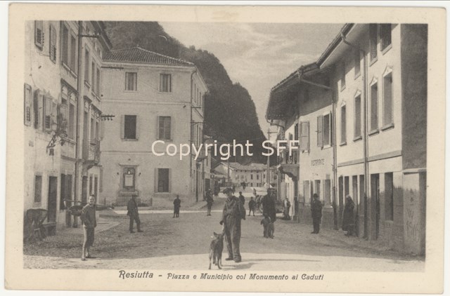 Resiutta - Piazza e Municipio col Monumento ai Caduti