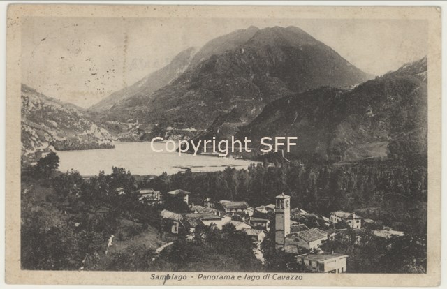Una veduta della frazione di Samplago; sullo sfondo il lago