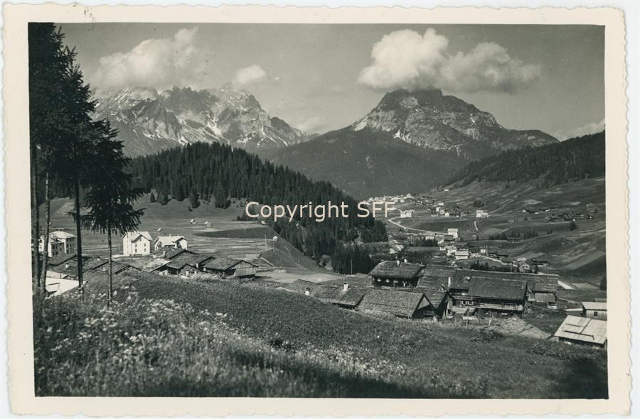 Veduta di Borgata Cima con il Gruppo delle Terze sullo sfondo.