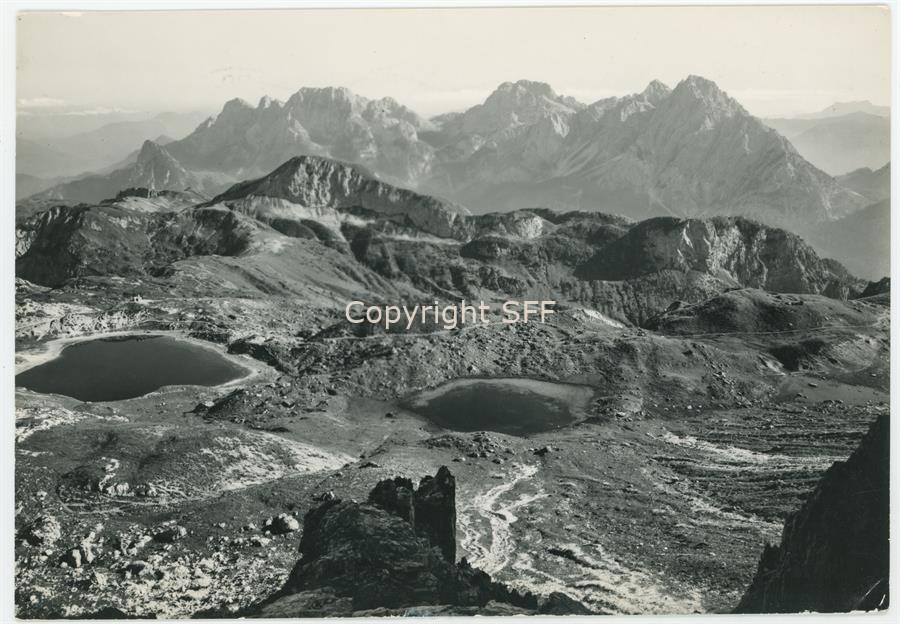 SAPPADA m. 1250. Laghi d'Olbe m. 2164 sullo sfondo il Gr. del M. Siera