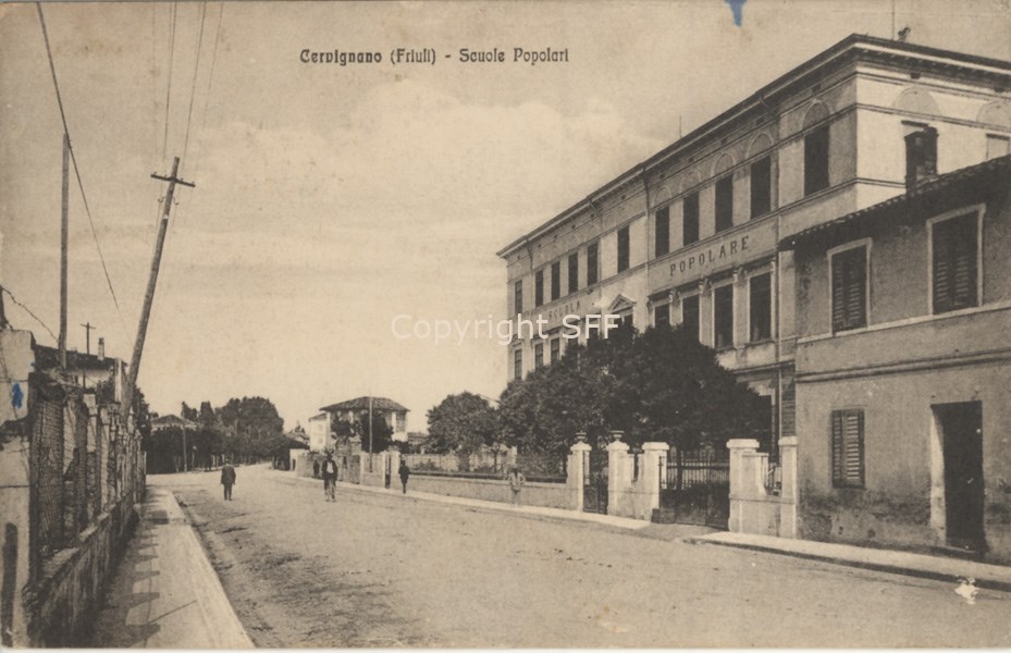 L'edificio delle Scuole Popolari e la strada su cui si affaccia