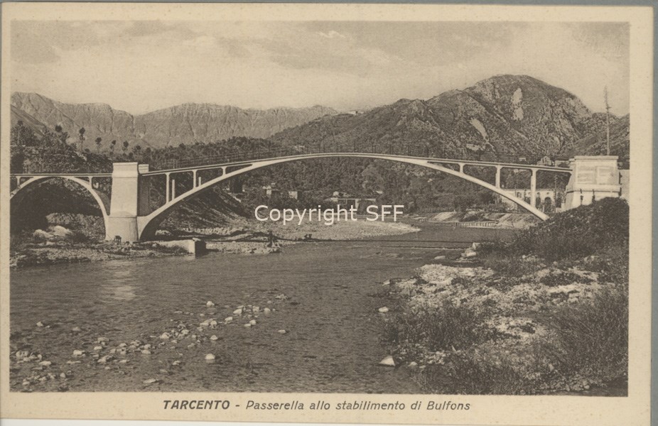 Passerella sopra il torrente Torre che serve da collegamento con lo stabilimento di filati Bulfons