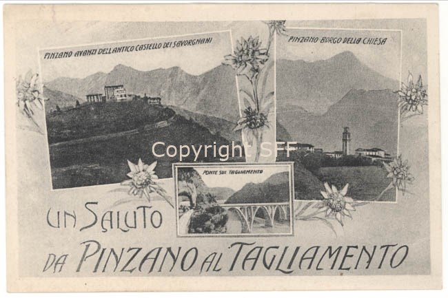 Un saluto da Pinzano al Tagliamento - Avanzi dell'antico Castello dei Savorgnani - Borgo della chiesa - Ponte sul Tagliamento