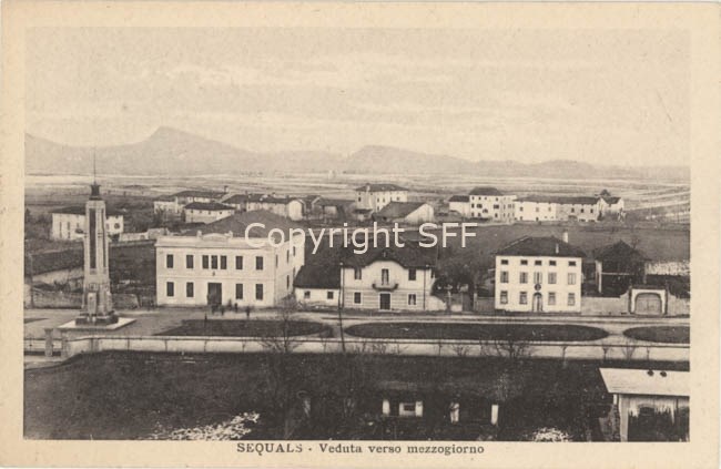 Veduta del paese; si riconoscono piazza Cesarina Pellarin e il monumento ai caduti
