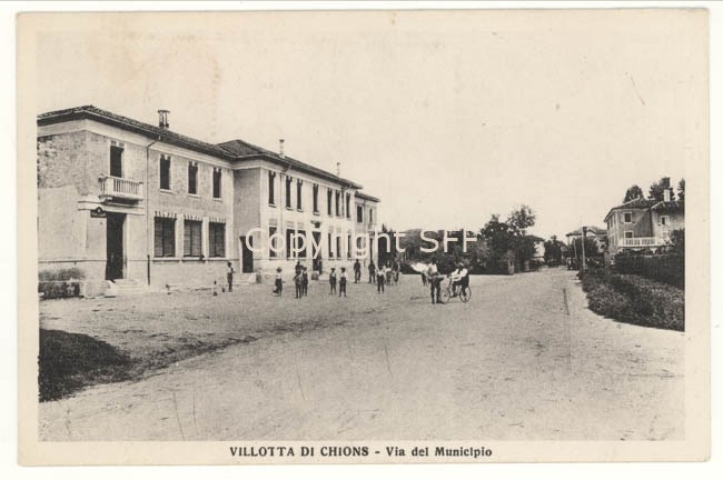 Uno scorcio di via del Municipio attuale via Vittorio Veneto; sulla sinistra è riconoscibile l'attuale edificio che ospita gli uffici comunali