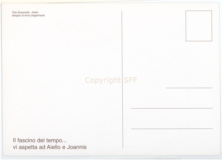 Stampa tipografica su disegno di Anna Degenhardt raffigurante la porzione centrale della facciata di Villa Strassoldo, Chiarmazzis, Parisi, denominata anche Villa Strassoldo, Lazzari, Parisi, Sabot, ripresa attraverso il portone d'ingresso principale. La villa presenta i tipici caratteri stilistici legati alla tipologia di villa veneta. Il complesso di origine secentesca, venne rimaneggiato nell'Ottocento, La fontana, di fronte all’ingresso principale, è stata introdotta nel Novecento, modificando l’originale assetto di un cortile d’onore.