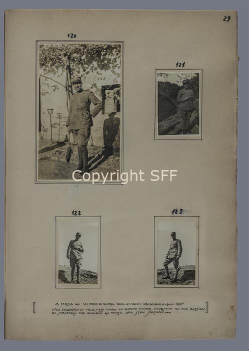 XXX S. Tenete ritratto a figura intera nelle retrovie a Mossa, per un periodo di riposo dopo la permanenza in prima linea. Ritratto sulle alture del Monte Podgora nell'estate del 1915.