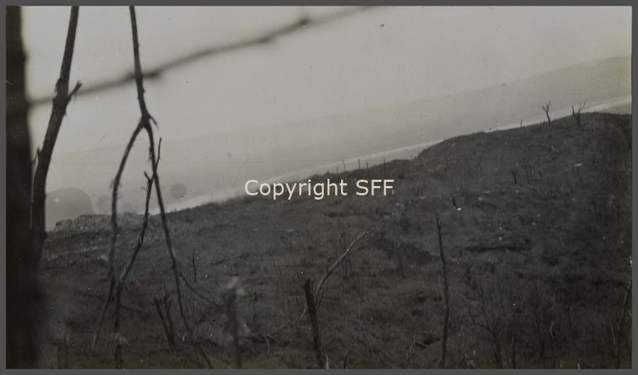 Vista del Monte Calvario [Podgora] con la quota 184 in basso a destra, e sullo sfondo l’Isonzo che scorre ai piedi del Monte San Michele